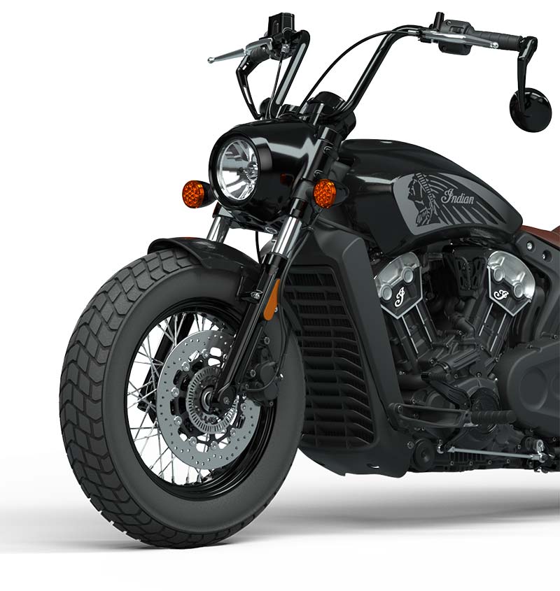 De Scout Bobber Twenty is geïnspireerd op de naamgever en ziet er niet voor niets zo gemeen uit. Met een mix van verchroomde en zwarte afwerkingsdetails en spaakwielen laat deze ride de wereld weten dat het je menens is.