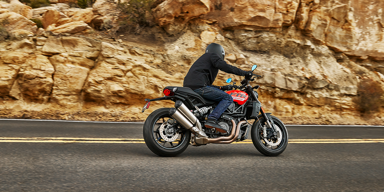 Of het nu stationair draait of volop accelereert, de krachtige motor van de FTR onderstreept de stijl van de fiets. Vergeet niet om het volume hoger te zetten!