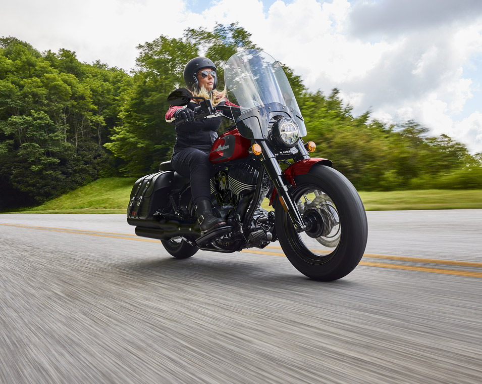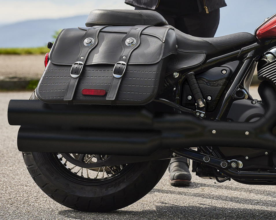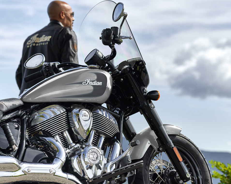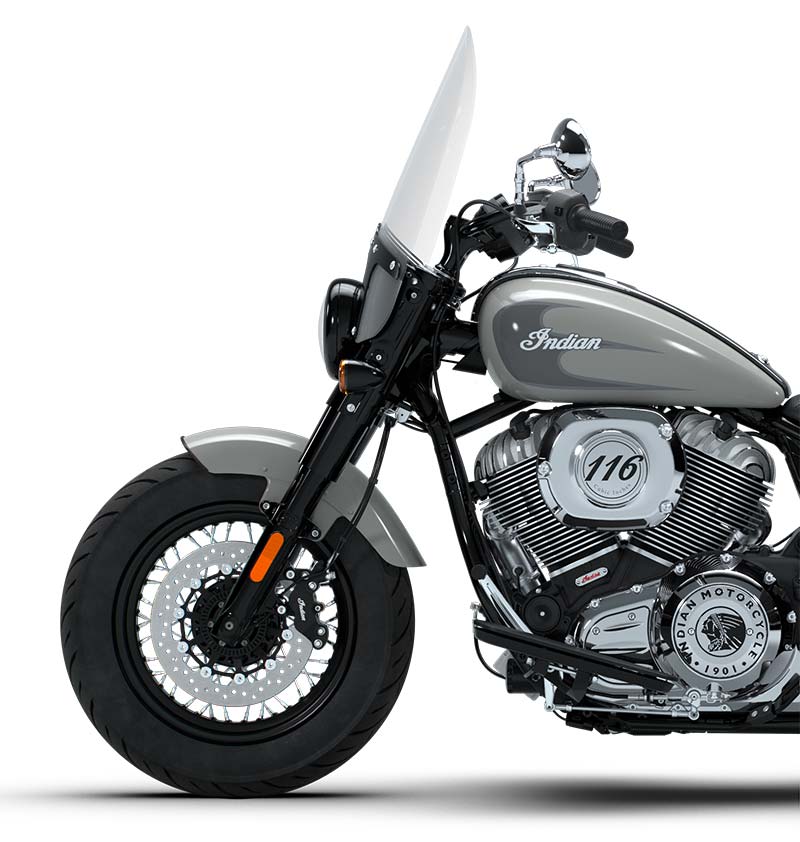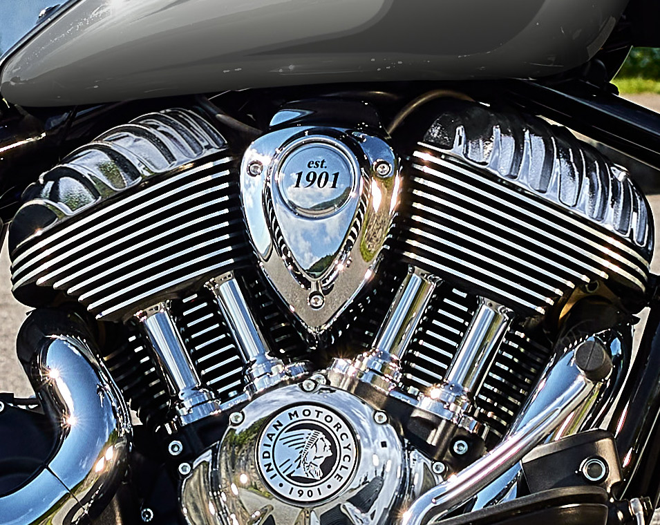 Hoogwaardige zwarte of verchroomde afwerkingsdetails, vorkbekleding, spaakwielen, een grote koplamp met sierkap en het iconische Indian Motorcycle-logo op de tank maken van deze bike een opvallende verschijning.